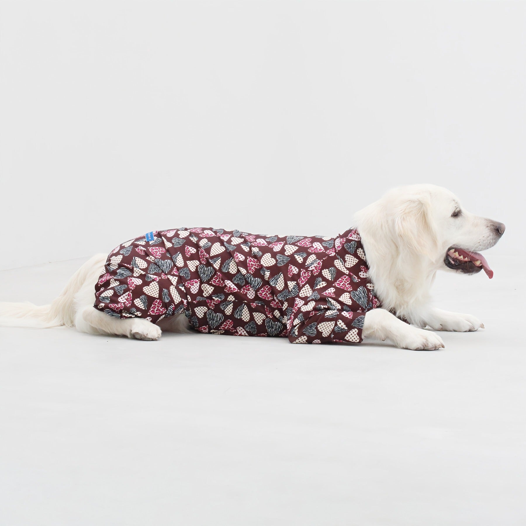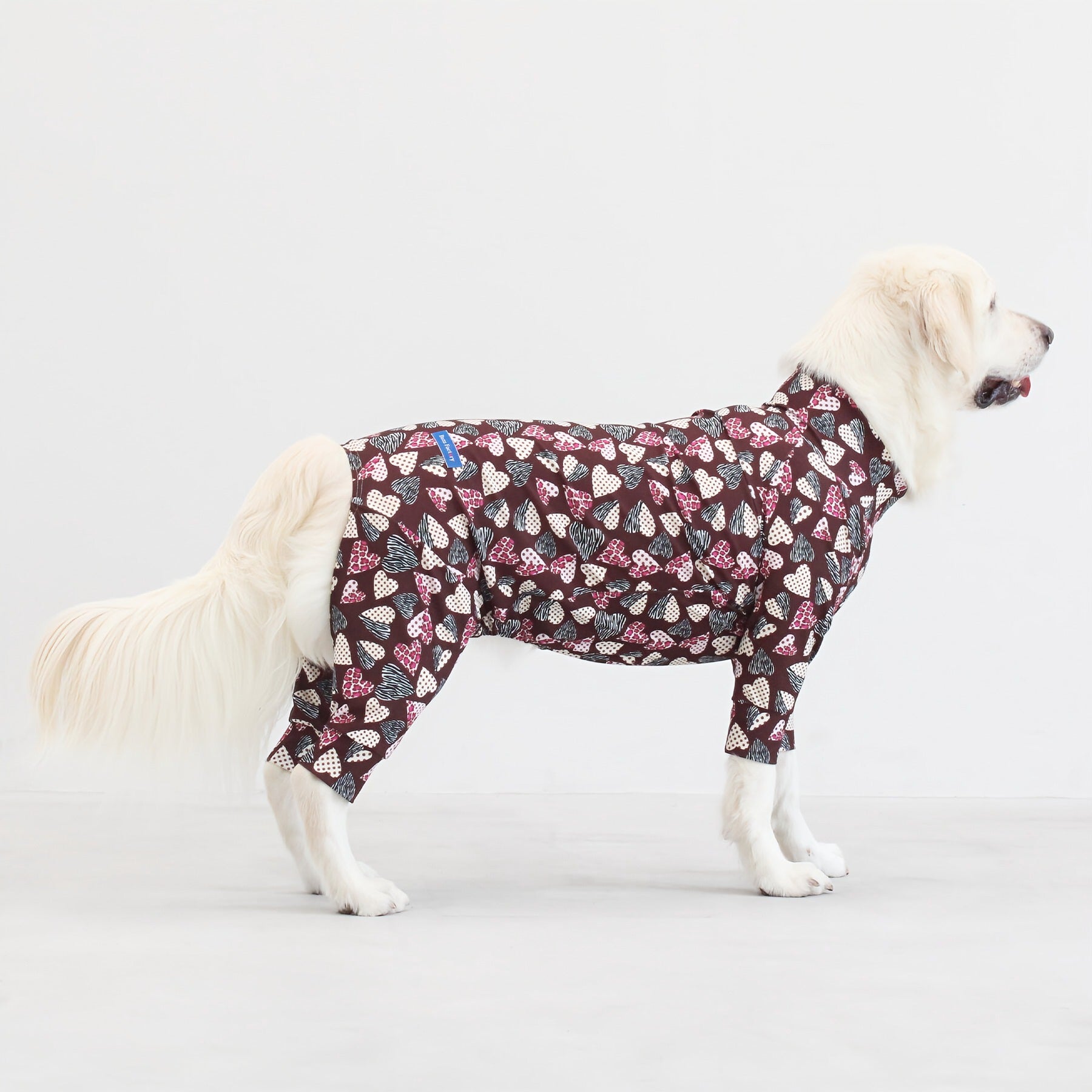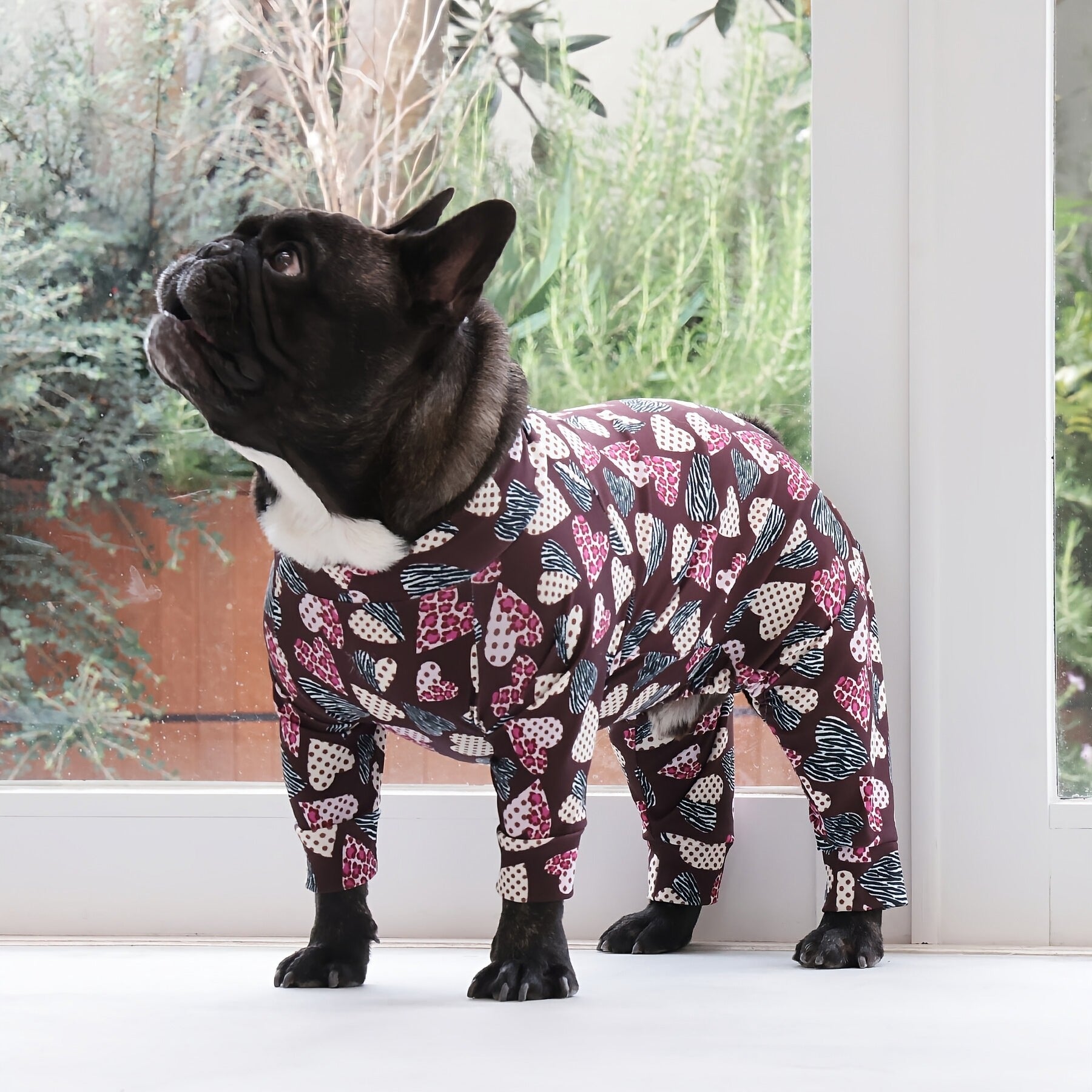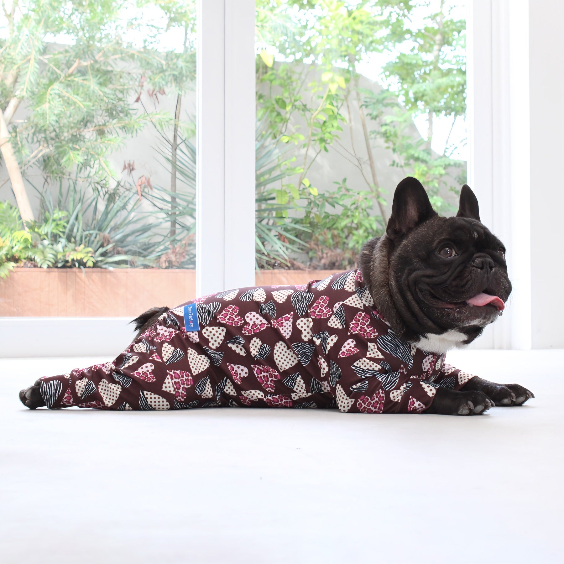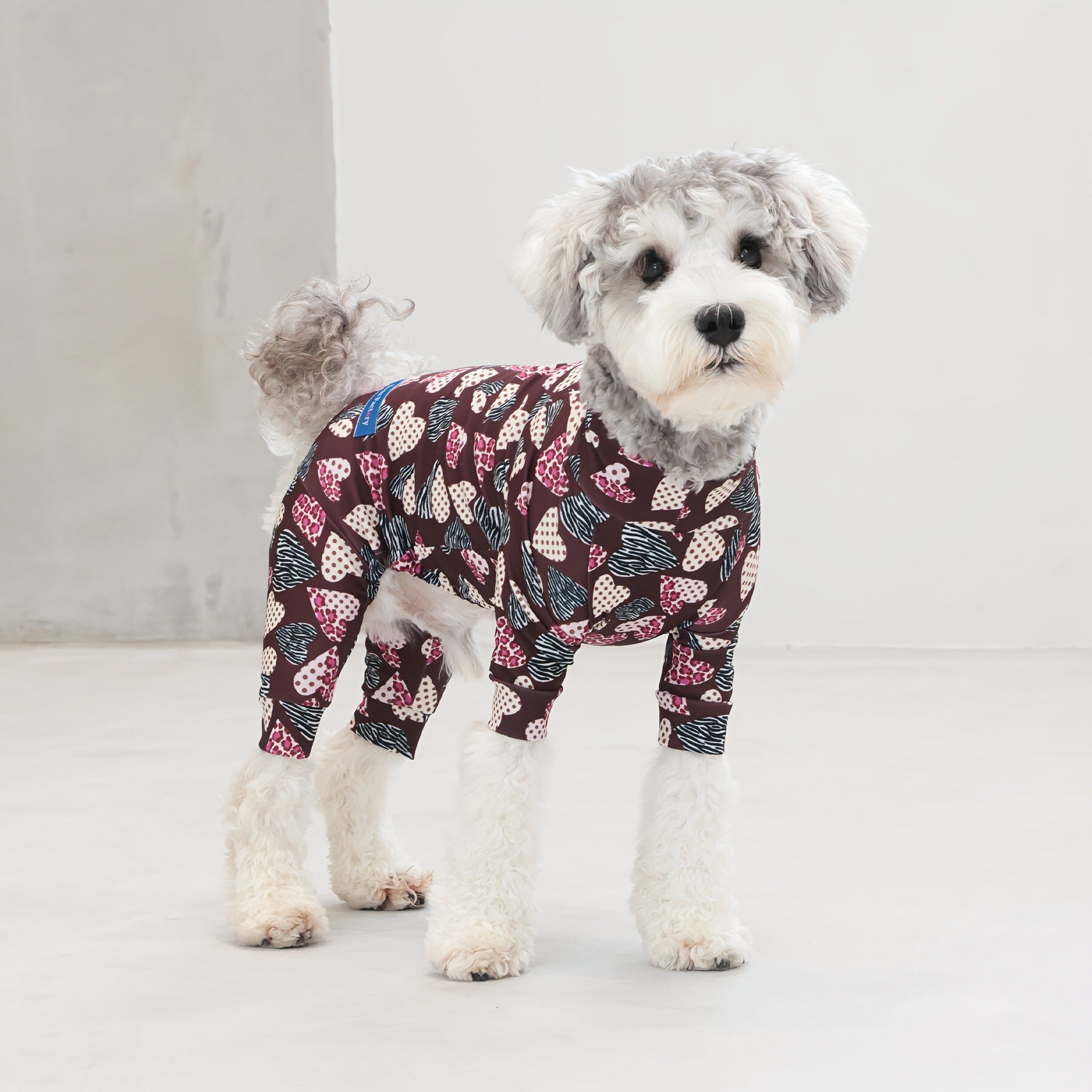 ※サイズによって値段が異なりますので、サイズをご選択していただき、値段をご確認ください。商品説明クールと可愛らしさ、両立が難しい2つの雰囲気を表現したアニマルハート。レオパードやジブラをハートやドットで可愛しく仕上げております。ロンパースでは珍しい、黒色を地色に採用していることもこだわりポイントのひとつです。こちらのカラフルロンパース シリーズは伸縮性や形態安定にとても優れており、オールシーズンに活躍。また、アウトドアやお出かけに最適なアイテムで、飼い主の方々にとっては日本製・洗濯可能なので安心かつイージーケアな商品です。わんちゃん用のウェアには散歩中やドッグランでの防汚効果や野生のノミ・ダニ予防、屋内や車内での抜け毛予防、手術や治療後の舐め防止など、多くの利点がございます。【モデル】トイプードル(Lサイズ着用)【モデル】ビジョンフリーゼ(Lサイズ着用)【モデル】ジャックラッセルテリア(LLサイズ着用)【モデル】ミニチュアシュナウザー(LLサイズ着用)【モデル】シェットランドシープドッグ(4Lサイズ着用)【モデル】スタンダードプードル(※0歳)(4Lサイズ着用)【モデル】フレンチブルドッグ(FPGサイズ着用)※新色、「チョコ」より撮影モデルが変更いたします。【モデル①】チワワ(体重:2kg、着用:Mサイズ)【モデル②】ティーカップ・プードル(体重:1.5kg、着用:Mサイズ)【モデル③】ジャック・ラッセル・テリア(体重:6kg、着用:Lサイズ)【モデル④】トイ・プードル(体重:3kg、着用:Lサイズ)【モデル⑤】ミニチュア・シュナウザー(体重:9kg、着用:LLサイズ)【モデル⑥】ビション・フリーゼ(体重:9.5kg、着用:3Lサイズ)【モデル⑦】シベリアン・ハスキー(体重:22kg、着用:5Lサイズ)【モデル⑧】イングリッシュ・ゴールデン・レトリーバー(体重:28kg、着用:6Lサイズ)【モデル⑨】フレンチ・ブルドッグ(体重:11.8kg、着用:FPGサイズ)サイズS, M, L, 2L(LL), 3L, 4L, 5L, 6L, DFS, DFM, FPG※サイズ測定はサイズ表をご覧ください。素材 / 仕様ポリエステル 83%、ポリウレタン 17%ロンパースタイプ(4つ足用)素材感生地の厚さ:普通透け感:透けない伸縮性:あり裏地:なしポケット:なし内容量本製品×1原産国日本洗濯絵表示洗濯可能本製品のお取り扱い-