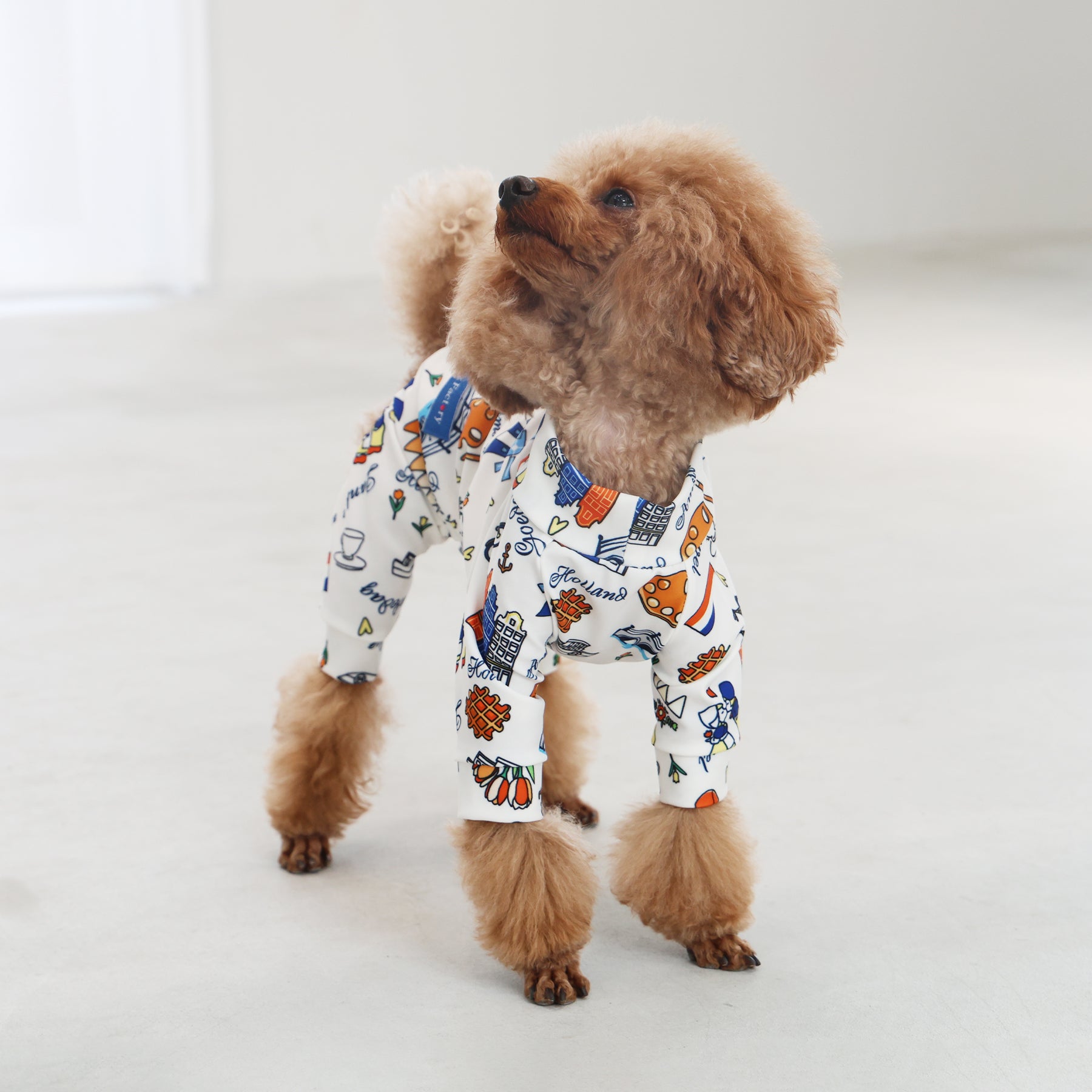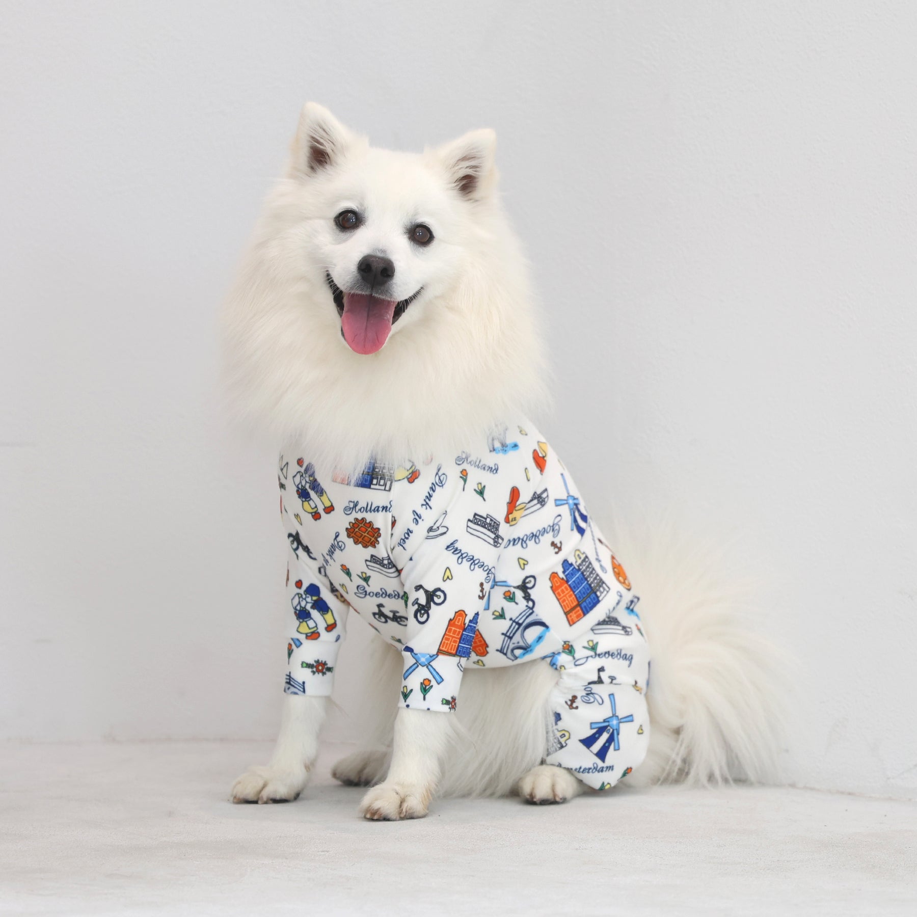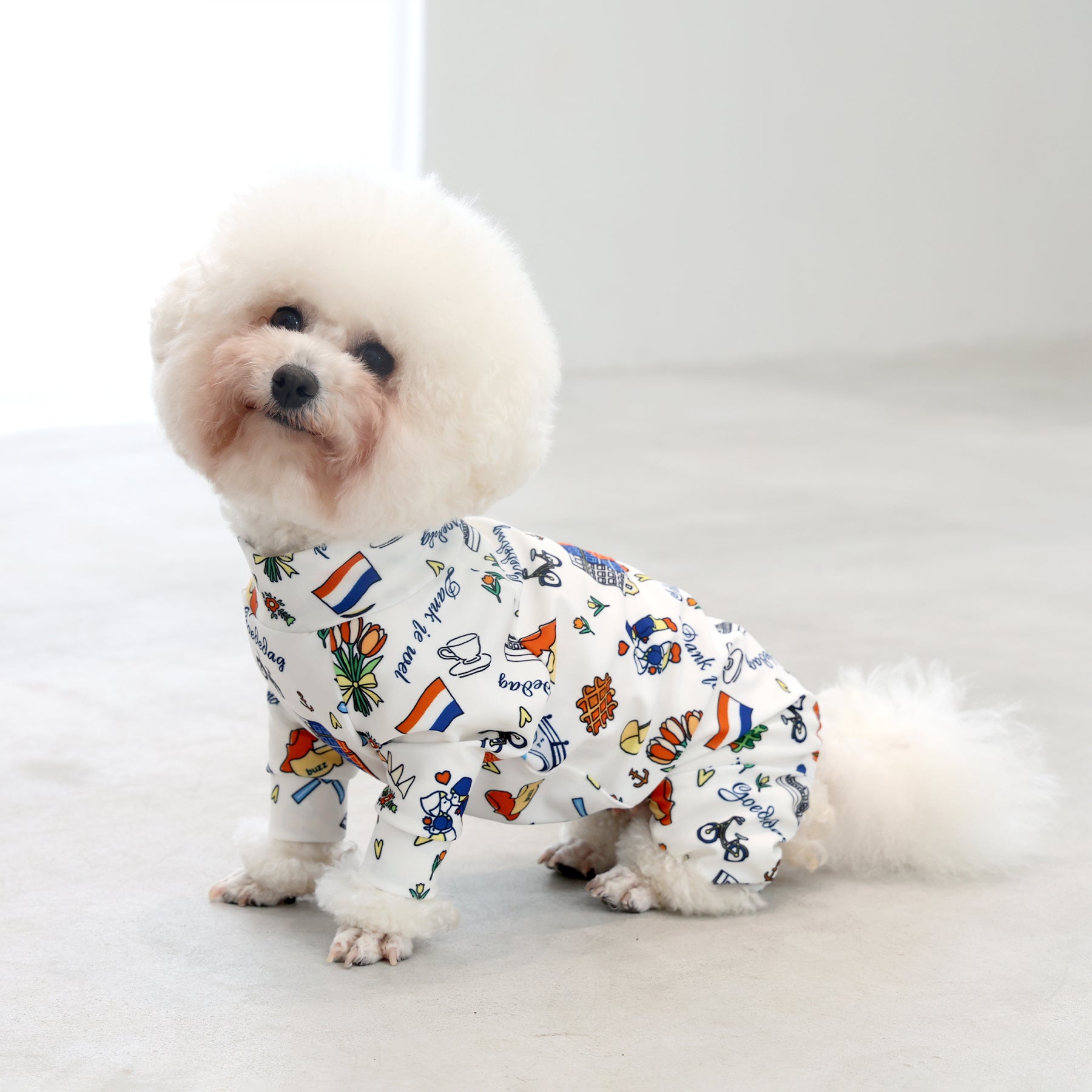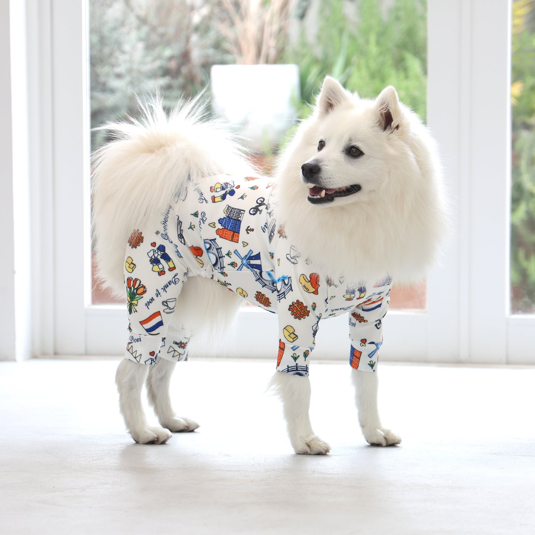 ※サイズによって値段が異なりますので、サイズをご選択していただき、値段をご確認ください。商品説明Buzz Factoryから、人気のお国シリーズに新作「オランダ」柄が仲間入り!るんるん、オランダでお散歩している気分になるような、そんなデザインを描いてみました。ホワイトを基調に、男の子でも女の子でも可愛らしい1枚となっております。【モデル①】ティーカップ・プードル(体重:1.4kg、着用:Mサイズ)【モデル②】ティーカップ・プードル(体重:1.5kg、着用:Mサイズ)【モデル③】ビション・フリーゼ(体重:-kg、着用:LLサイズ)【モデル④】トイ・プードル(体重:2.5kg、着用:Lサイズ)【モデル⑤】トイ・プードル(体重:3.2kg、着用:Lサイズ)【モデル⑥】日本スピッツ(体重:9.5kg、着用:3Lサイズ)【モデル⑦】スタンダード・プードル(体重:17kg、着用:5Lサイズ)【モデル⑧】スタンダード・プードル(体重:19kg、着用:5Lサイズ)【モデル⑨】マルックス(マルチーズ×ミニチュア・ダックスフンド)(体重:-kg、着用:DFMサイズ)生地の特徴伸縮性や形態安定にとても優れており、アウトドアやお出かけにオールシーズンで活躍してくれます。日本製・洗濯可能なので安心かつイージーケアな素材感になります。ロンパース / Rompers とはわんちゃん用の専用ウェアとして、散歩中やドッグランでの防汚効果や野生のノミ・ダニ予防、屋内や車内での抜け毛予防、手術や治療後の舐め防止など、多くの利点がございます。サイズ標準サイズ:S、M、L、LL、3L、4L、5L、6Lフレンチ・パグサイズ:FPGダックスフンド:DFS(Sサイズ)、DFM(Mサイズ)※サイズ測定はサイズ表をご覧ください。素材 / 仕様ポリエステル 83%、ポリウレタン 17%ロンパースタイプ(4つ足用)素材感生地の厚さ:普通透け感:透けない(白地のみ:やや透ける)伸縮性:あり裏地:なしポケット:なし内容量本製品×1原産国日本洗濯絵表示洗濯可能本製品のお取り扱い-