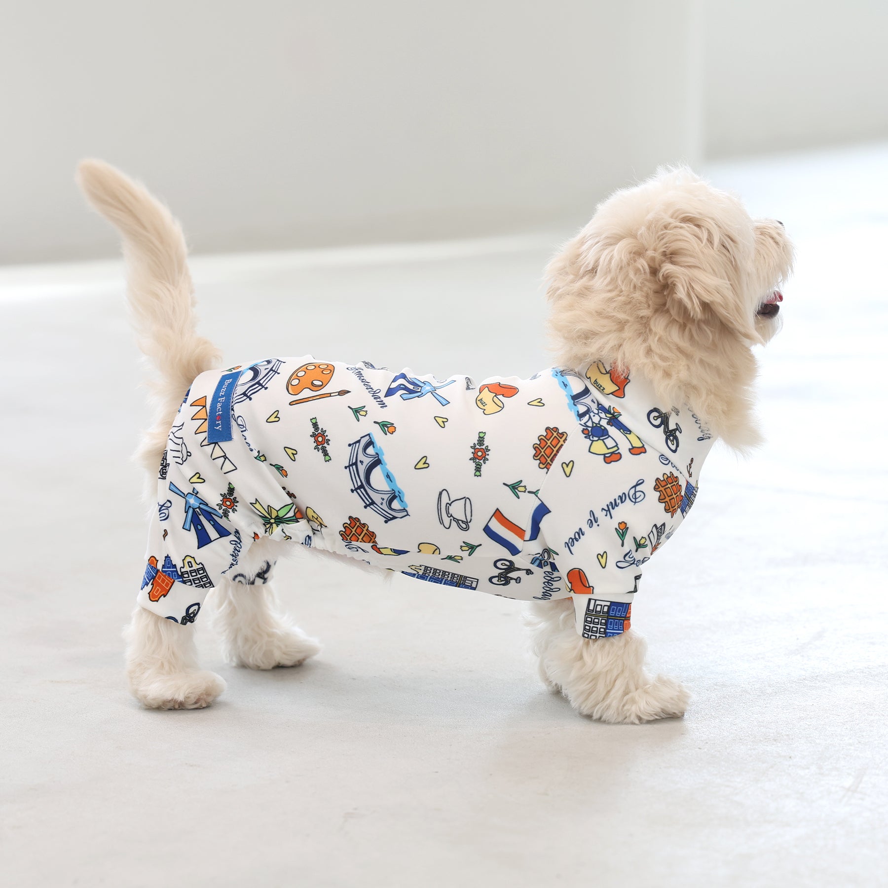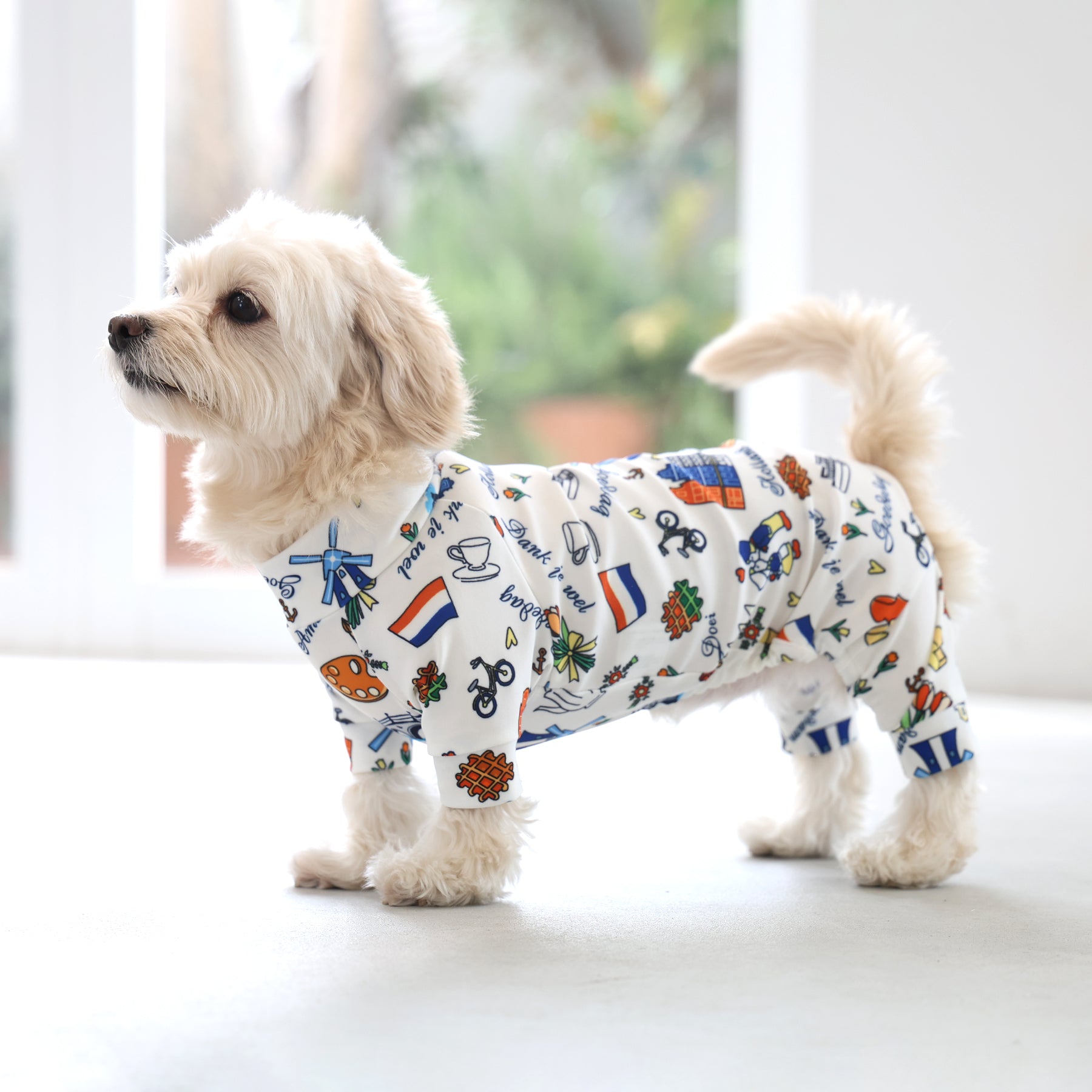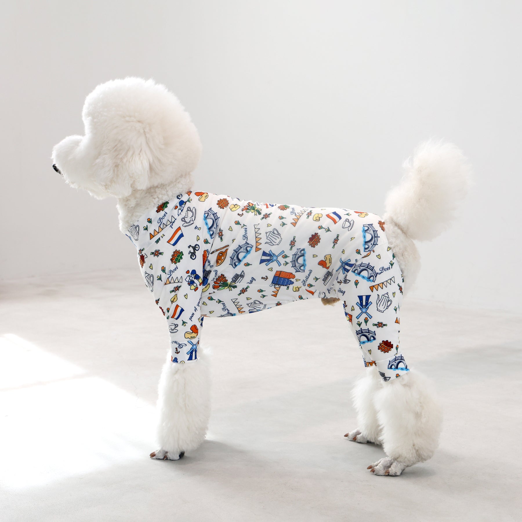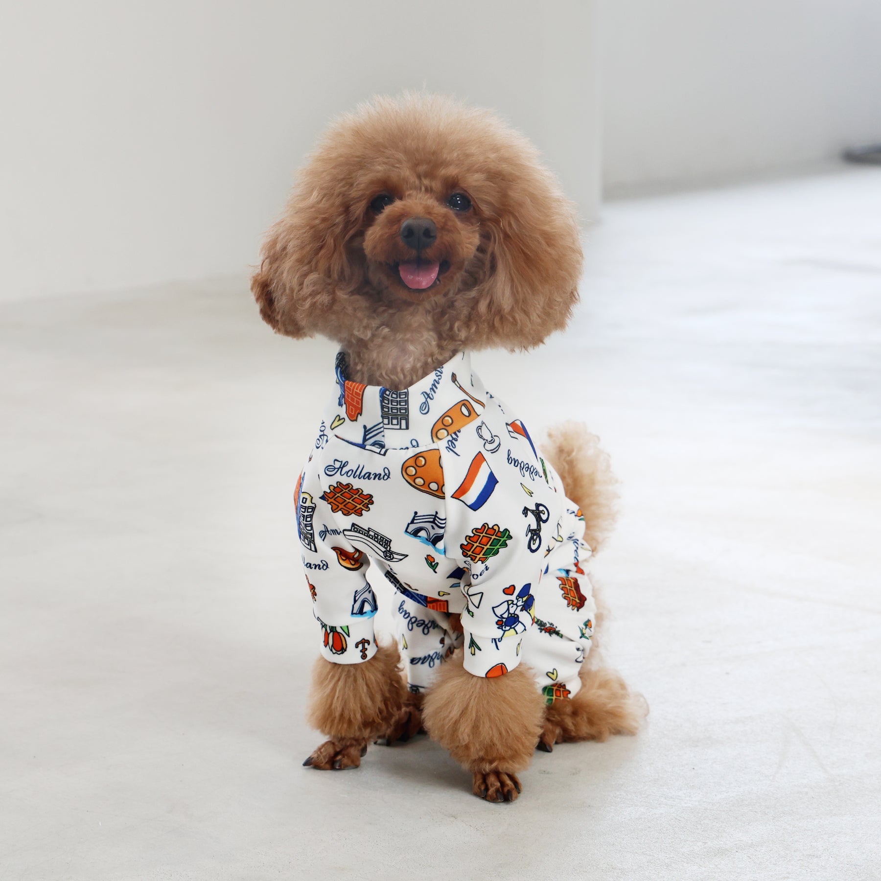 ※サイズによって値段が異なりますので、サイズをご選択していただき、値段をご確認ください。商品説明Buzz Factoryから、人気のお国シリーズに新作「オランダ」柄が仲間入り!るんるん、オランダでお散歩している気分になるような、そんなデザインを描いてみました。ホワイトを基調に、男の子でも女の子でも可愛らしい1枚となっております。【モデル①】ティーカップ・プードル(体重:1.4kg、着用:Mサイズ)【モデル②】ティーカップ・プードル(体重:1.5kg、着用:Mサイズ)【モデル③】ビション・フリーゼ(体重:-kg、着用:LLサイズ)【モデル④】トイ・プードル(体重:2.5kg、着用:Lサイズ)【モデル⑤】トイ・プードル(体重:3.2kg、着用:Lサイズ)【モデル⑥】日本スピッツ(体重:9.5kg、着用:3Lサイズ)【モデル⑦】スタンダード・プードル(体重:17kg、着用:5Lサイズ)【モデル⑧】スタンダード・プードル(体重:19kg、着用:5Lサイズ)【モデル⑨】マルックス(マルチーズ×ミニチュア・ダックスフンド)(体重:-kg、着用:DFMサイズ)生地の特徴伸縮性や形態安定にとても優れており、アウトドアやお出かけにオールシーズンで活躍してくれます。日本製・洗濯可能なので安心かつイージーケアな素材感になります。ロンパース / Rompers とはわんちゃん用の専用ウェアとして、散歩中やドッグランでの防汚効果や野生のノミ・ダニ予防、屋内や車内での抜け毛予防、手術や治療後の舐め防止など、多くの利点がございます。サイズ標準サイズ:S、M、L、LL、3L、4L、5L、6Lフレンチ・パグサイズ:FPGダックスフンド:DFS(Sサイズ)、DFM(Mサイズ)※サイズ測定はサイズ表をご覧ください。素材 / 仕様ポリエステル 83%、ポリウレタン 17%ロンパースタイプ(4つ足用)素材感生地の厚さ:普通透け感:透けない(白地のみ:やや透ける)伸縮性:あり裏地:なしポケット:なし内容量本製品×1原産国日本洗濯絵表示洗濯可能本製品のお取り扱い-