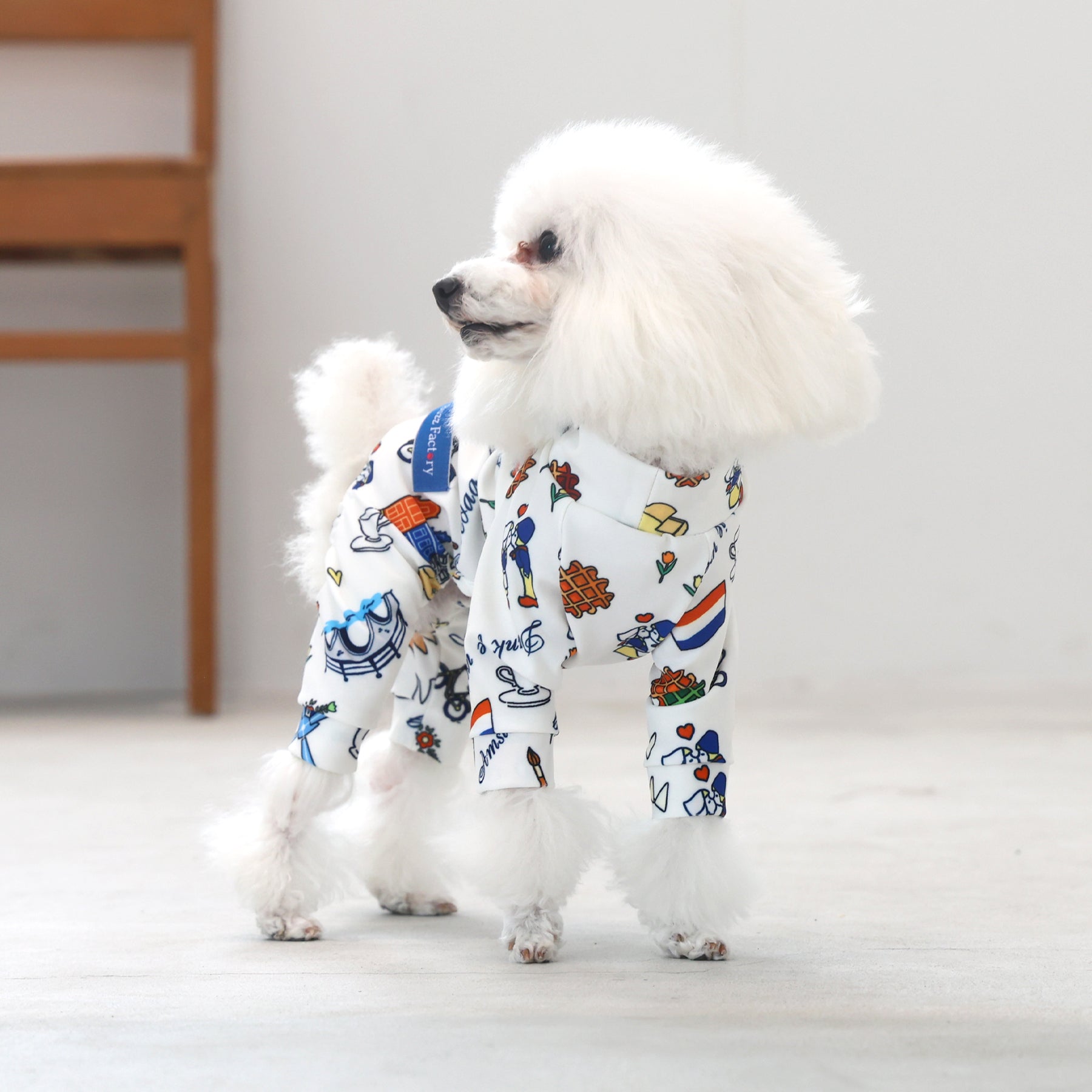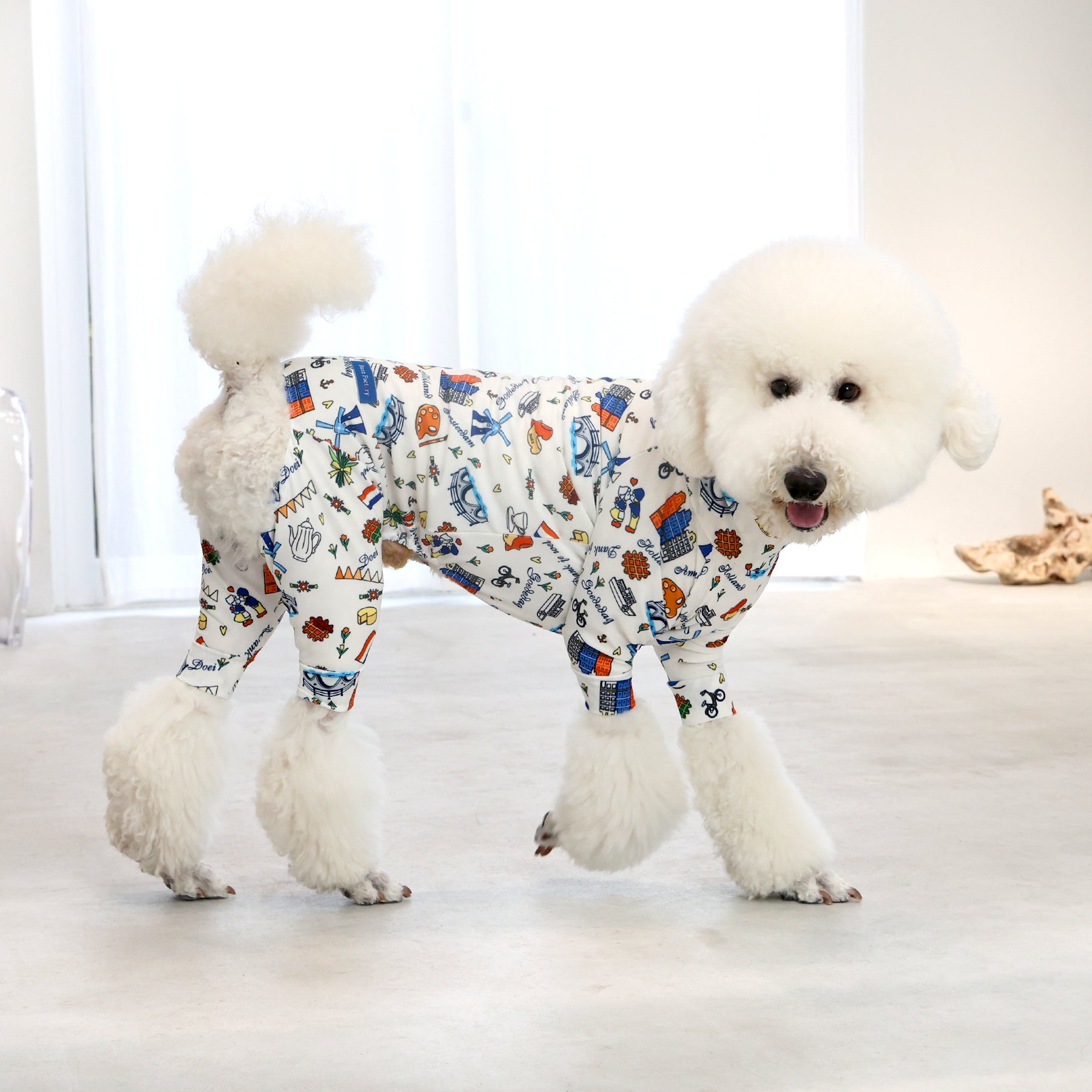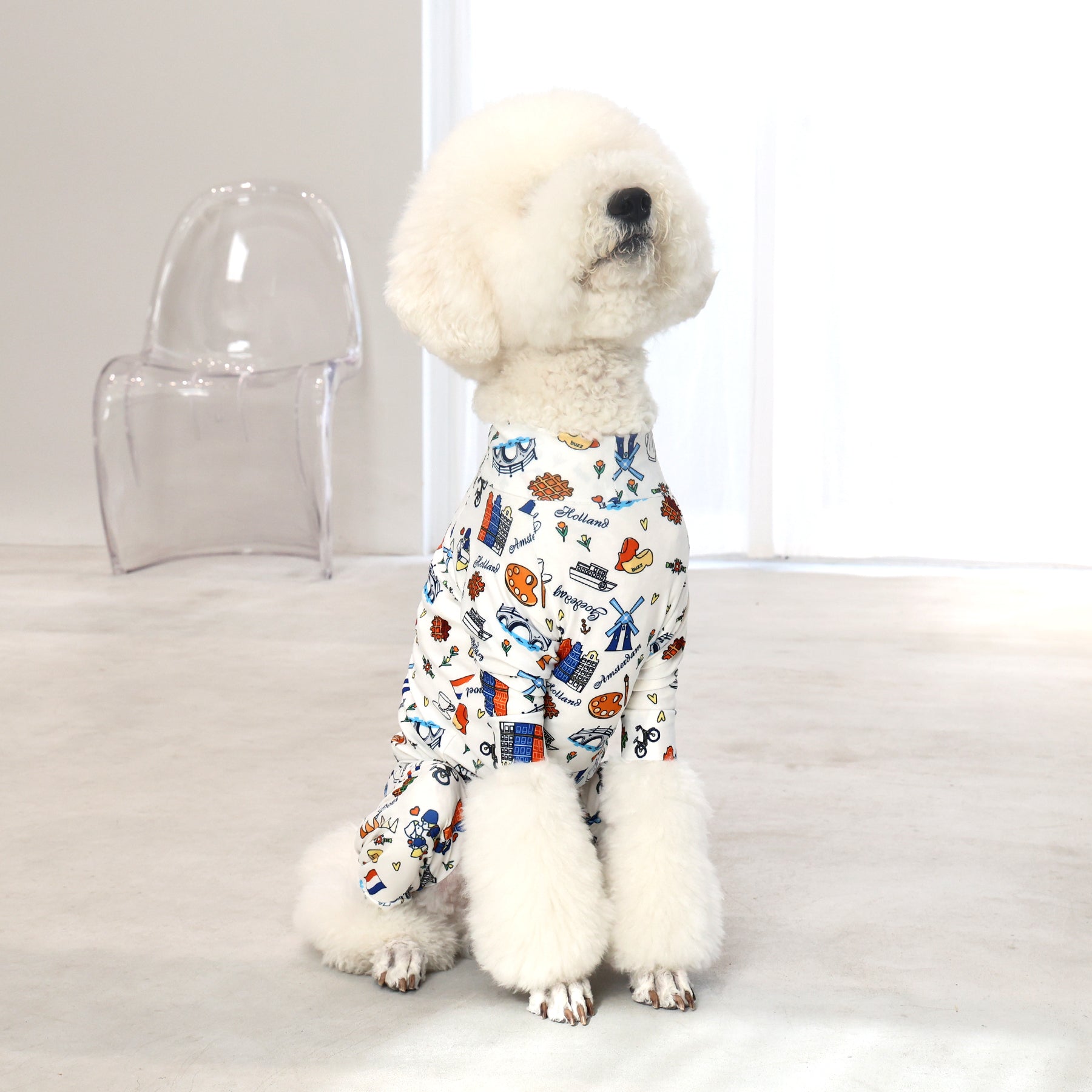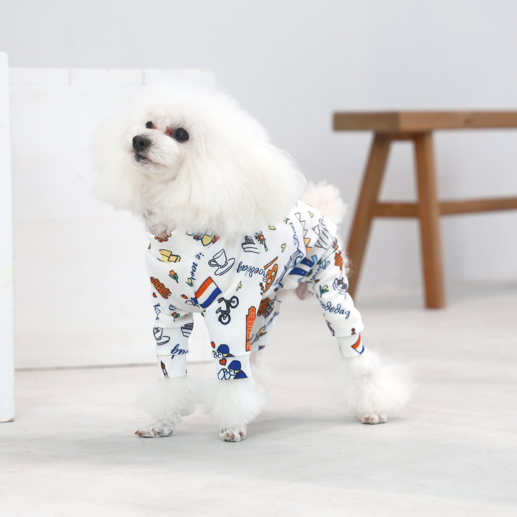 ※サイズによって値段が異なりますので、サイズをご選択していただき、値段をご確認ください。商品説明Buzz Factoryから、人気のお国シリーズに新作「オランダ」柄が仲間入り!るんるん、オランダでお散歩している気分になるような、そんなデザインを描いてみました。ホワイトを基調に、男の子でも女の子でも可愛らしい1枚となっております。【モデル①】ティーカップ・プードル(体重:1.4kg、着用:Mサイズ)【モデル②】ティーカップ・プードル(体重:1.5kg、着用:Mサイズ)【モデル③】ビション・フリーゼ(体重:-kg、着用:LLサイズ)【モデル④】トイ・プードル(体重:2.5kg、着用:Lサイズ)【モデル⑤】トイ・プードル(体重:3.2kg、着用:Lサイズ)【モデル⑥】日本スピッツ(体重:9.5kg、着用:3Lサイズ)【モデル⑦】スタンダード・プードル(体重:17kg、着用:5Lサイズ)【モデル⑧】スタンダード・プードル(体重:19kg、着用:5Lサイズ)【モデル⑨】マルックス(マルチーズ×ミニチュア・ダックスフンド)(体重:-kg、着用:DFMサイズ)生地の特徴伸縮性や形態安定にとても優れており、アウトドアやお出かけにオールシーズンで活躍してくれます。日本製・洗濯可能なので安心かつイージーケアな素材感になります。ロンパース / Rompers とはわんちゃん用の専用ウェアとして、散歩中やドッグランでの防汚効果や野生のノミ・ダニ予防、屋内や車内での抜け毛予防、手術や治療後の舐め防止など、多くの利点がございます。サイズ標準サイズ:S、M、L、LL、3L、4L、5L、6Lフレンチ・パグサイズ:FPGダックスフンド:DFS(Sサイズ)、DFM(Mサイズ)※サイズ測定はサイズ表をご覧ください。素材 / 仕様ポリエステル 83%、ポリウレタン 17%ロンパースタイプ(4つ足用)素材感生地の厚さ:普通透け感:透けない(白地のみ:やや透ける)伸縮性:あり裏地:なしポケット:なし内容量本製品×1原産国日本洗濯絵表示洗濯可能本製品のお取り扱い-