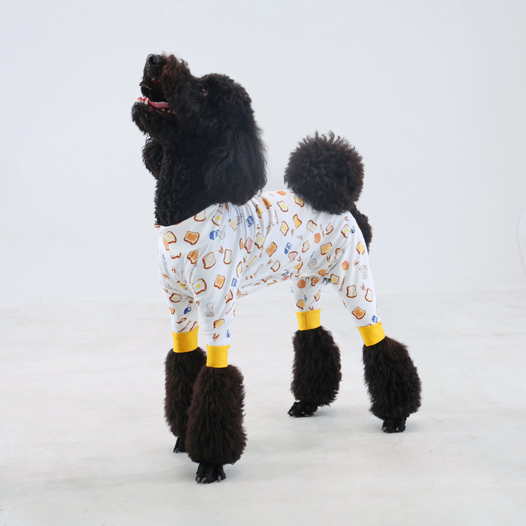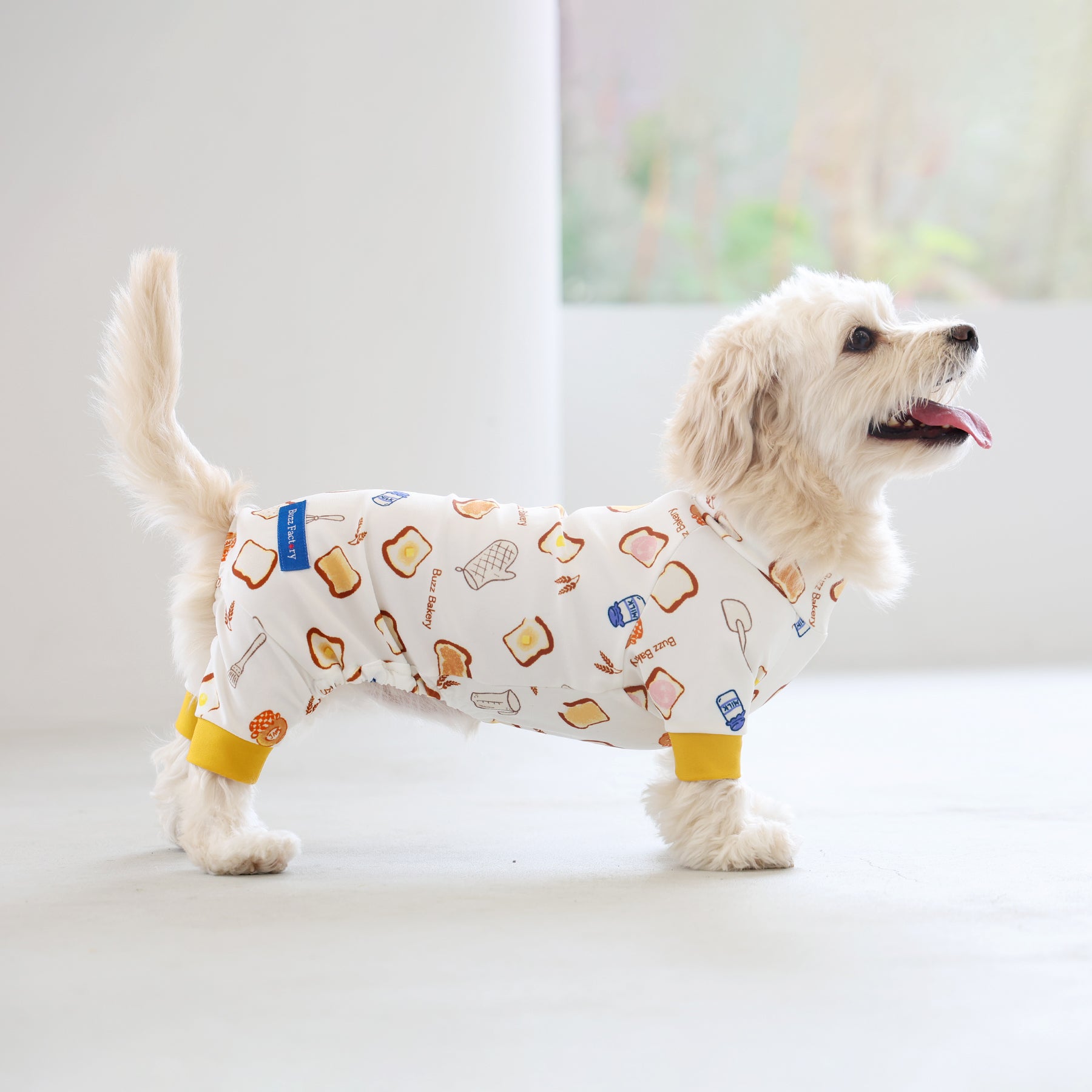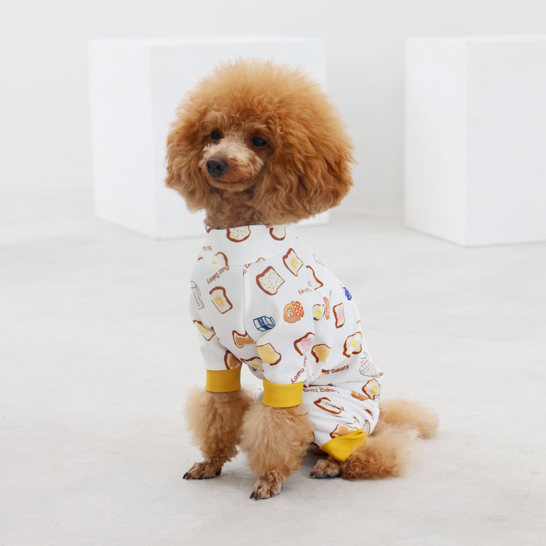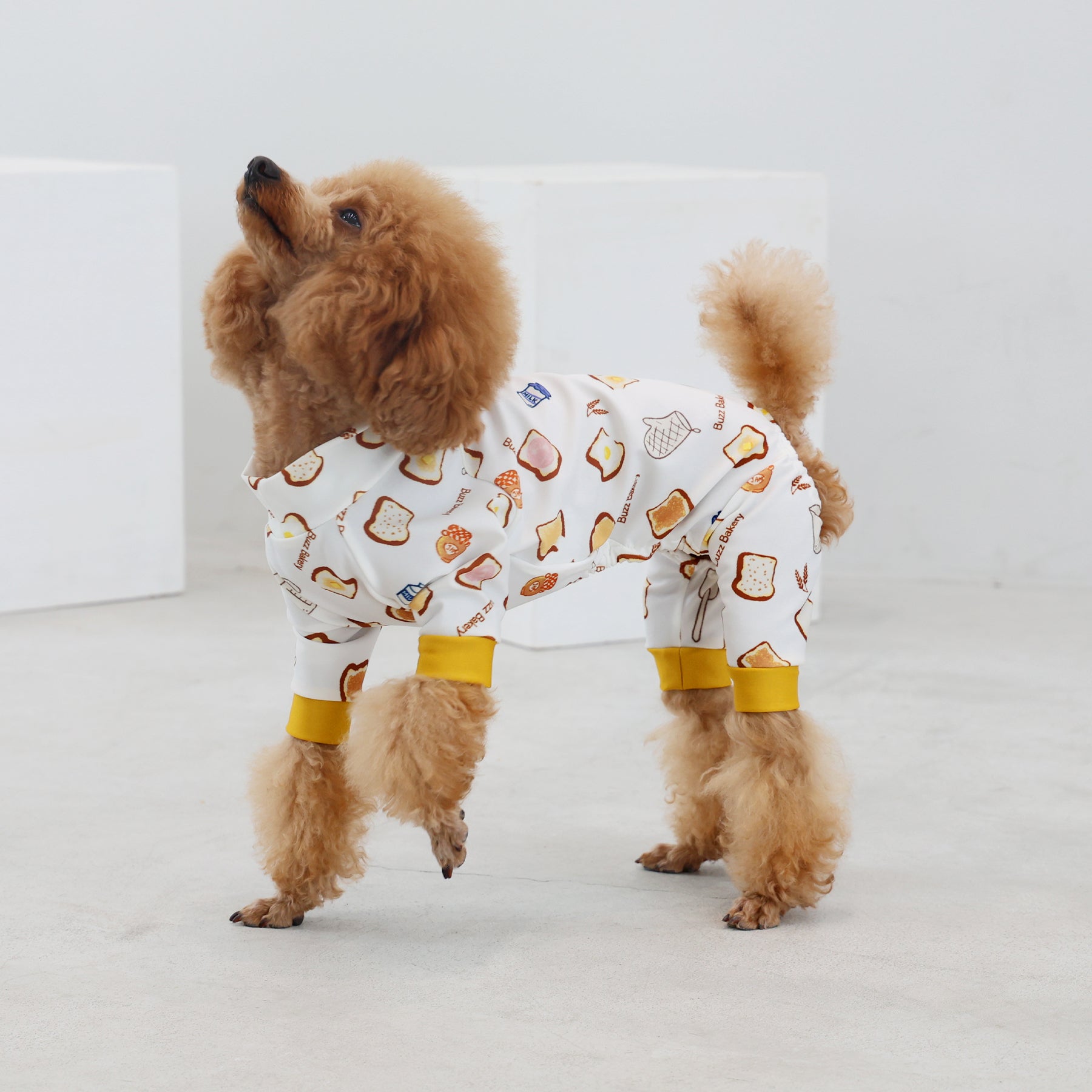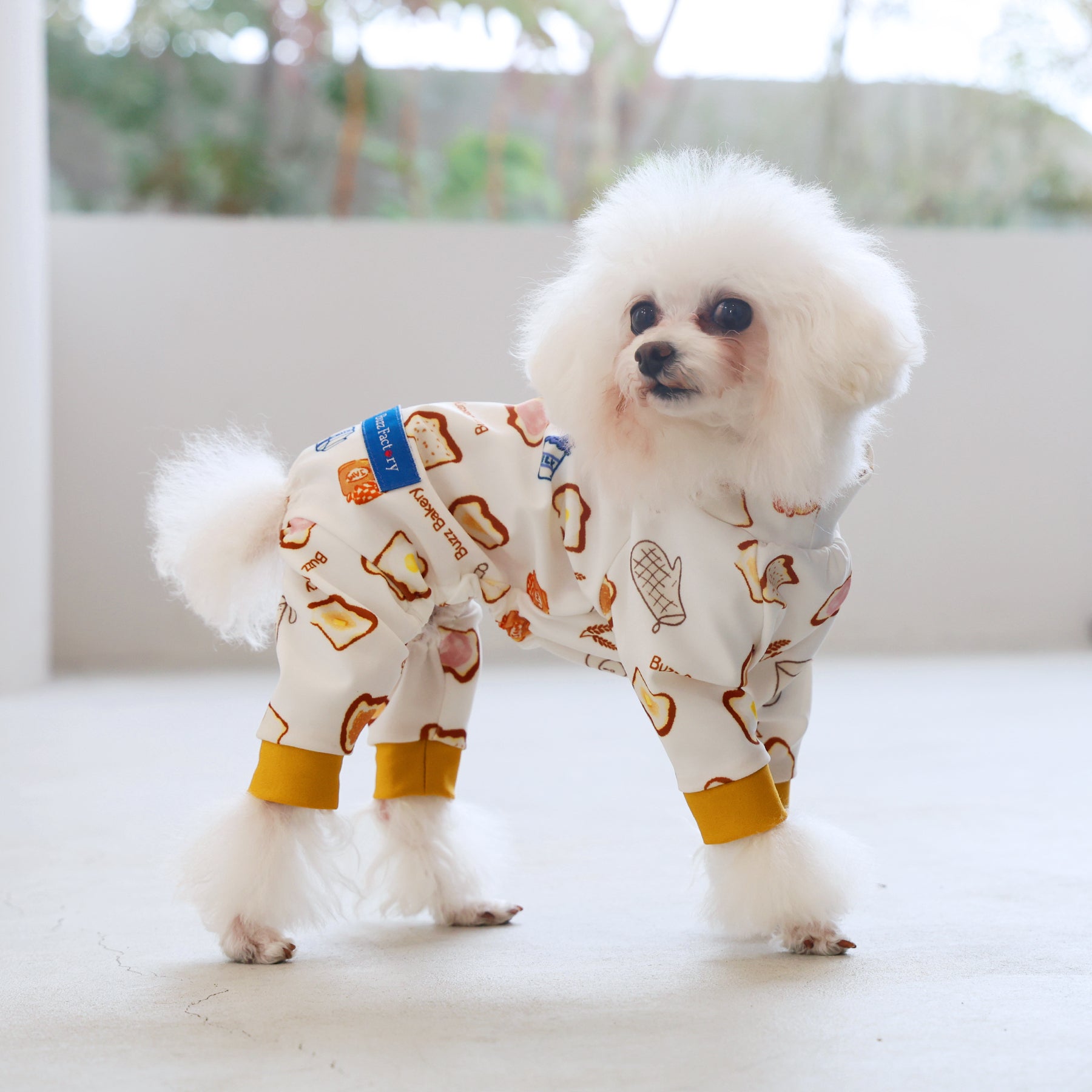 ※サイズによって値段が異なりますので、サイズをご選択していただき、値段をご確認ください。商品説明Buzz Factoryから、トーストをテーマにした愛らしい新作が登場!たくさん食べるわが子には新作のトーストを。 思わず食べたくなるような素敵なデザインに仕上げています。【モデル①】ティーカップ・プードル(体重:1.4kg、着用:Mサイズ)【モデル②】ティーカップ・プードル(体重:1.5kg、着用:Mサイズ)【モデル③】ビション・フリーゼ(体重:-kg、着用:LLサイズ)【モデル④】トイ・プードル(体重:2.5kg、着用:Lサイズ)【モデル⑤】トイ・プードル(体重:3.2kg、着用:Lサイズ)【モデル⑥】日本スピッツ(体重:9.5kg、着用:3Lサイズ)【モデル⑦】スタンダード・プードル(体重:17kg、着用:5Lサイズ)【モデル⑧】スタンダード・プードル(体重:19kg、着用:5Lサイズ)【モデル⑨】マルックス(マルチーズ×ミニチュア・ダックスフンド)(体重:-kg、着用:DFMサイズ)生地の特徴伸縮性や形態安定にとても優れており、アウトドアやお出かけにオールシーズンで活躍してくれます。日本製・洗濯可能なので安心かつイージーケアな素材感になります。ロンパース / Rompers とはわんちゃん用の専用ウェアとして、散歩中やドッグランでの防汚効果や野生のノミ・ダニ予防、屋内や車内での抜け毛予防、手術や治療後の舐め防止など、多くの利点がございます。サイズ標準サイズ:S、M、L、LL、3L、4L、5L、6Lフレンチ・パグサイズ:FPGダックスフンド:DFS(Sサイズ)、DFM(Mサイズ)※サイズ測定はサイズ表をご覧ください。素材 / 仕様ポリエステル 83%、ポリウレタン 17%ロンパースタイプ(4つ足用)素材感生地の厚さ:普通透け感:透けない(白地のみ:やや透ける)伸縮性:あり裏地:なしポケット:なし内容量本製品×1原産国日本洗濯絵表示洗濯可能本製品のお取り扱い-