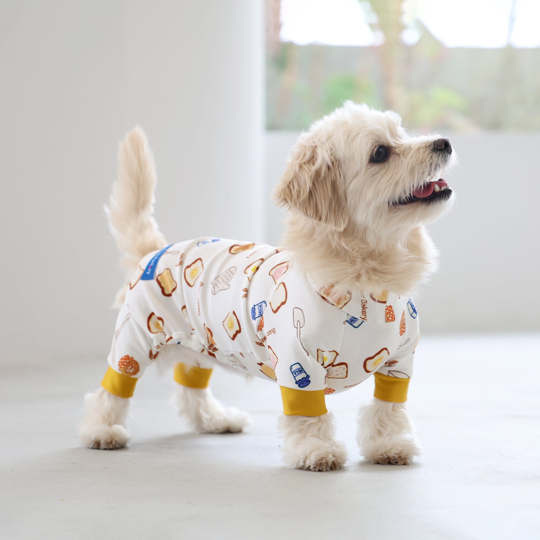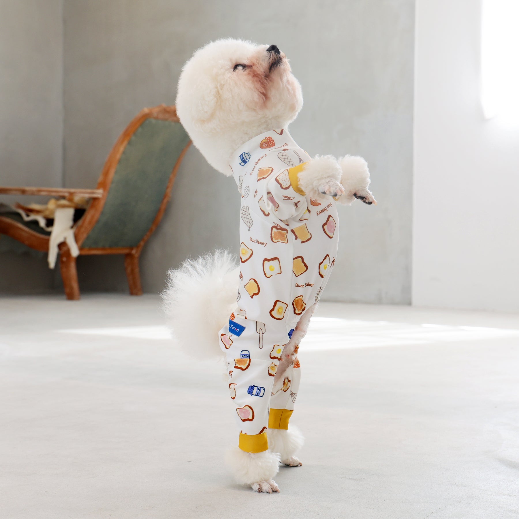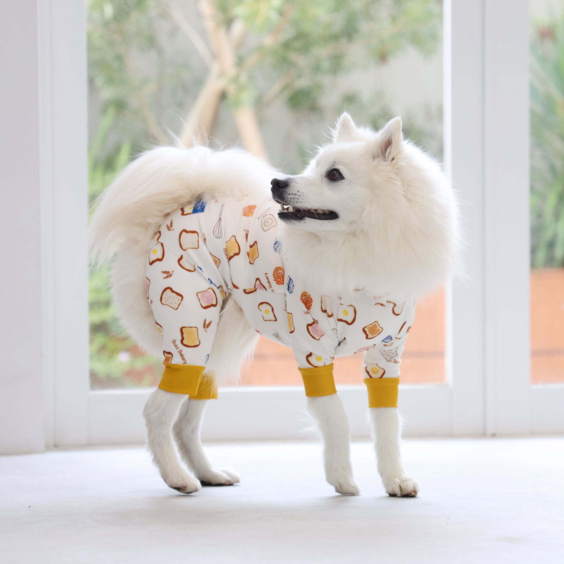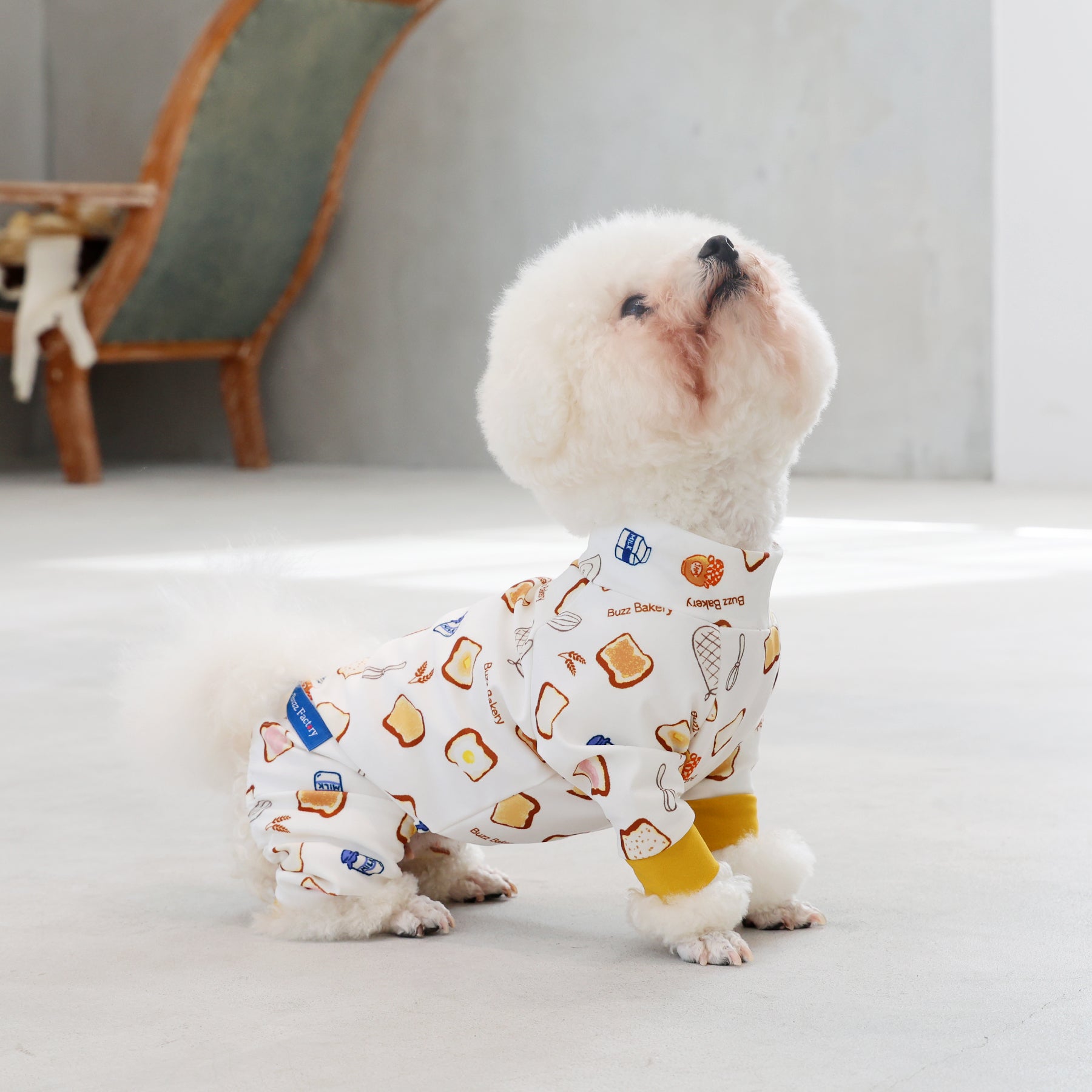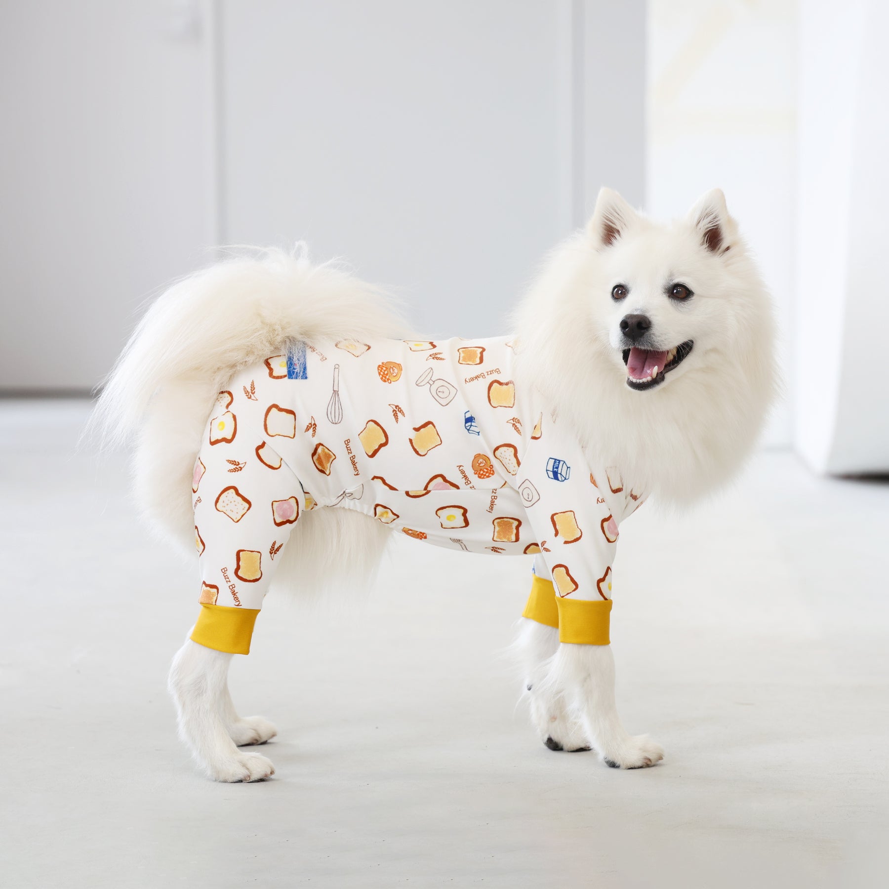 ※サイズによって値段が異なりますので、サイズをご選択していただき、値段をご確認ください。商品説明Buzz Factoryから、トーストをテーマにした愛らしい新作が登場!たくさん食べるわが子には新作のトーストを。 思わず食べたくなるような素敵なデザインに仕上げています。【モデル①】ティーカップ・プードル(体重:1.4kg、着用:Mサイズ)【モデル②】ティーカップ・プードル(体重:1.5kg、着用:Mサイズ)【モデル③】ビション・フリーゼ(体重:-kg、着用:LLサイズ)【モデル④】トイ・プードル(体重:2.5kg、着用:Lサイズ)【モデル⑤】トイ・プードル(体重:3.2kg、着用:Lサイズ)【モデル⑥】日本スピッツ(体重:9.5kg、着用:3Lサイズ)【モデル⑦】スタンダード・プードル(体重:17kg、着用:5Lサイズ)【モデル⑧】スタンダード・プードル(体重:19kg、着用:5Lサイズ)【モデル⑨】マルックス(マルチーズ×ミニチュア・ダックスフンド)(体重:-kg、着用:DFMサイズ)生地の特徴伸縮性や形態安定にとても優れており、アウトドアやお出かけにオールシーズンで活躍してくれます。日本製・洗濯可能なので安心かつイージーケアな素材感になります。ロンパース / Rompers とはわんちゃん用の専用ウェアとして、散歩中やドッグランでの防汚効果や野生のノミ・ダニ予防、屋内や車内での抜け毛予防、手術や治療後の舐め防止など、多くの利点がございます。サイズ標準サイズ:S、M、L、LL、3L、4L、5L、6Lフレンチ・パグサイズ:FPGダックスフンド:DFS(Sサイズ)、DFM(Mサイズ)※サイズ測定はサイズ表をご覧ください。素材 / 仕様ポリエステル 83%、ポリウレタン 17%ロンパースタイプ(4つ足用)素材感生地の厚さ:普通透け感:透けない(白地のみ:やや透ける)伸縮性:あり裏地:なしポケット:なし内容量本製品×1原産国日本洗濯絵表示洗濯可能本製品のお取り扱い-