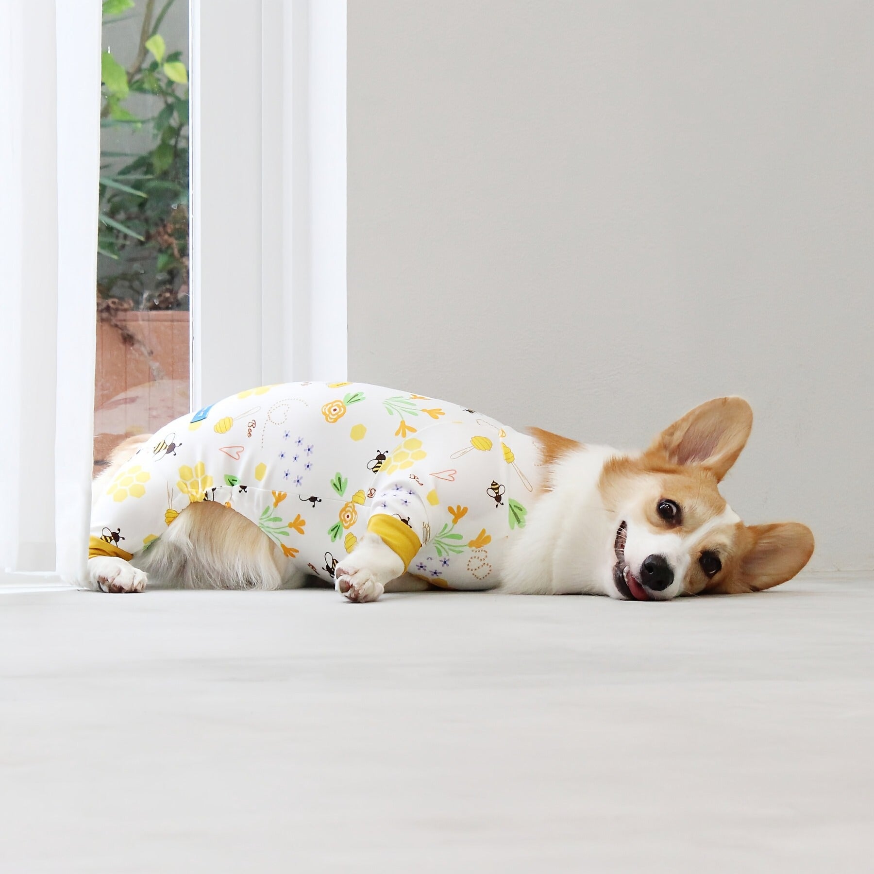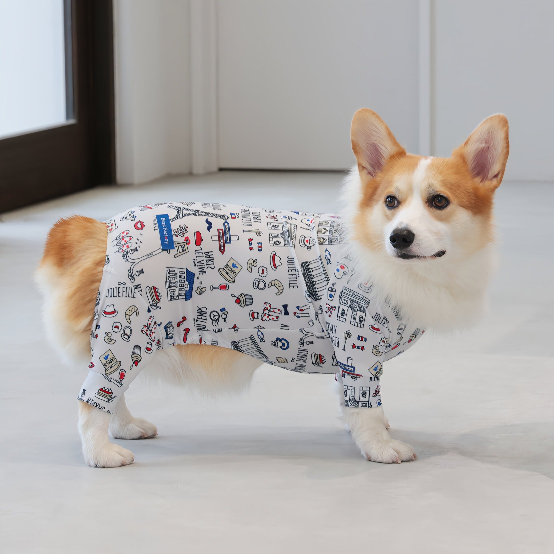 ※サイズによって値段が異なりますので、サイズをご選択していただき、値段をご確認ください。商品説明Buzz Factoryから、コーギーをはじめとする胴長・短足タイプのわんちゃん専用サイズが登場。動きやすさと着心地の良さを追求し、胴回り・着丈・袖丈をバランスよく設計。元気に走り回ってもズレにくく、快適に過ごせる一着です。おトイレで心配な股下やしっぽ付近はさっぱり目に設計されています。デザインは、人気のポップ柄・アニマルモチーフ・クラシックデザインなど、個性を引き立てる豊富なバリエーションをご用意。お好みのテイストから、お気に入りの一枚をお選びください。【モデル①】ウェルシュ・コーギー・ペンブローク (体重:11kg、着用:CGSサイズ)【モデル②】ウェルシュ・コーギー・ペンブローク (体重:14kg、着用:CGMサイズ)生地の特徴伸縮性や形態安定にとても優れており、アウトドアやお出かけにオールシーズンで活躍してくれます。日本製・洗濯可能なので安心かつイージーケアな素材感になります。ロンパース / Rompers とはわんちゃん用の専用ウェアとして、散歩中やドッグランでの防汚効果や野生のノミ・ダニ予防、屋内や車内での抜け毛予防、手術や治療後の舐め防止など、多くの利点がございます。サイズCGS(Sサイズ)、CGM(Mサイズ)※サイズ測定はサイズ表をご覧ください。素材 / 仕様ポリエステル 83%、ポリウレタン 17%ロンパースタイプ(4つ足用)素材感生地の厚さ:普通透け感:透けない(白地のみ:やや透ける)伸縮性:あり裏地:なしポケット:なし内容量本製品×1原産国日本洗濯絵表示洗濯可能本製品のお取り扱い-